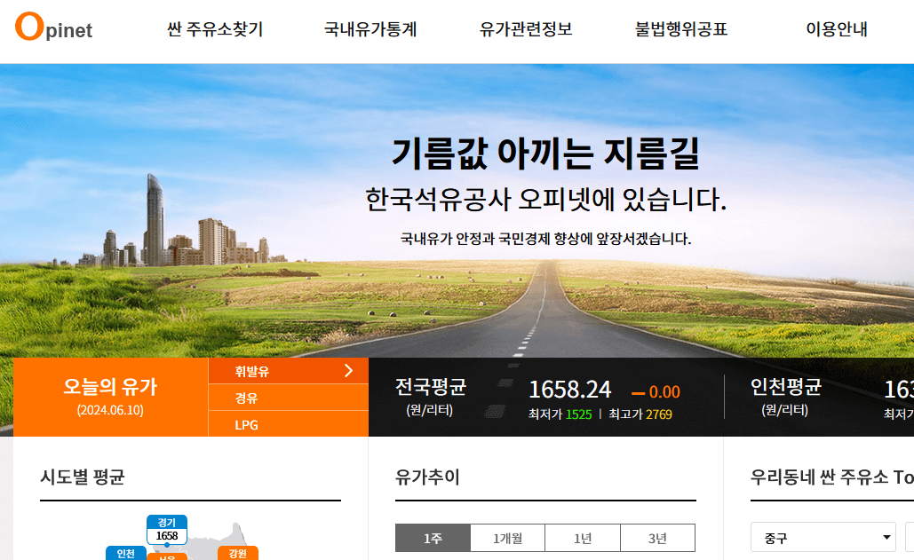 오피넷 사이트를 통해서 어플이나 홈페이지에서 사용자들이 가장 저렴한 곳을 찾아보거나 주변에 있는 금액 비교가 가능합니다.