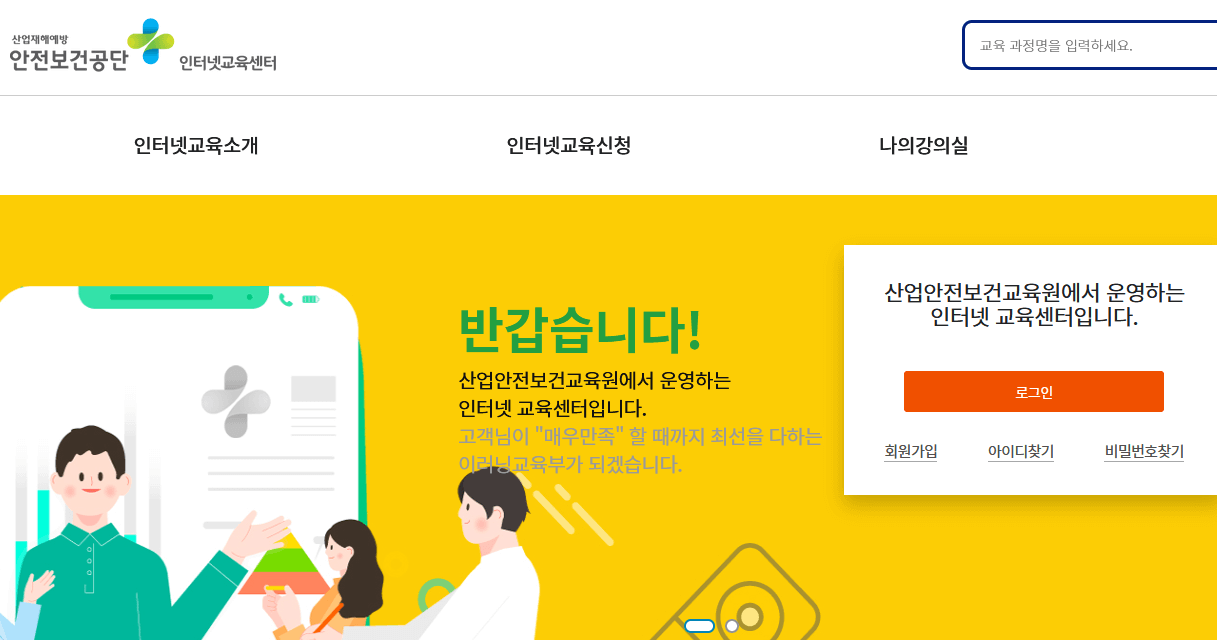 산업안전 보건교육을 온라인으로 무료 교육 받고 싶으신 분들은 🔍안전보건공단 인터넷 교육 홈페이지에서 하시길 바랍니다.