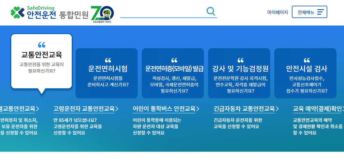 가장 우선적으로 발급을 받기 위해서는 🔍도로교통공단 안전운전 통합민원 센터에 접속을 해주셔야 합니다.