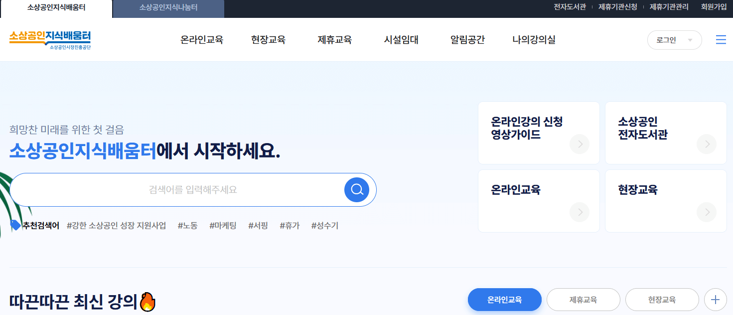 소상공인 지식 배움터는 소상공인들을 위한 온라인 교육 및 전자 도서관을 운영하는 사이트입니다.