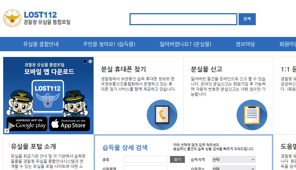 - 경찰청 유실물 센터를 이용하기 위해서는 회원 가입이 필수입니다