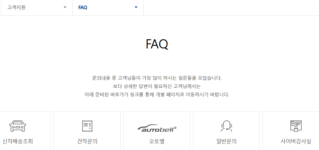 고객 지원 메뉴로 이동을 하였다면 [신차배송 조회] 메뉴로 이동을 하시면 됩니다.