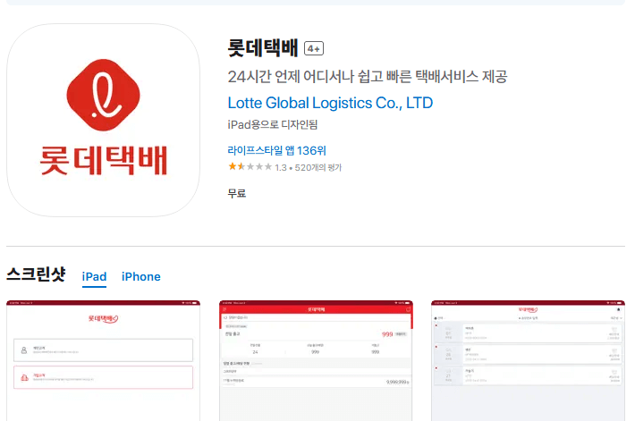 - 구글 플레이스토어 혹은 앱스토어에 '롯데 택배' 입력 후 설치