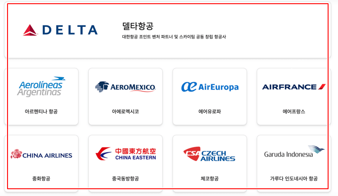 - 제휴 항공사 탑승 시 마일리지 적립 가능