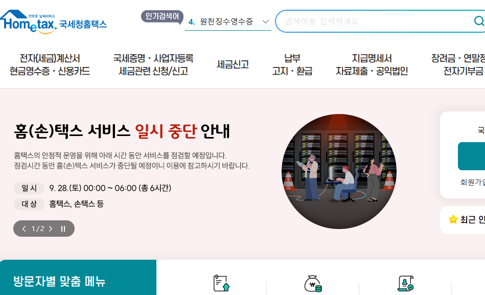 온라인으로 갑근세 원천징수 영수증 발급을 하고 싶으신분들은 🔍홈택스 홈페이지에 접속해보시길 바랍니다.