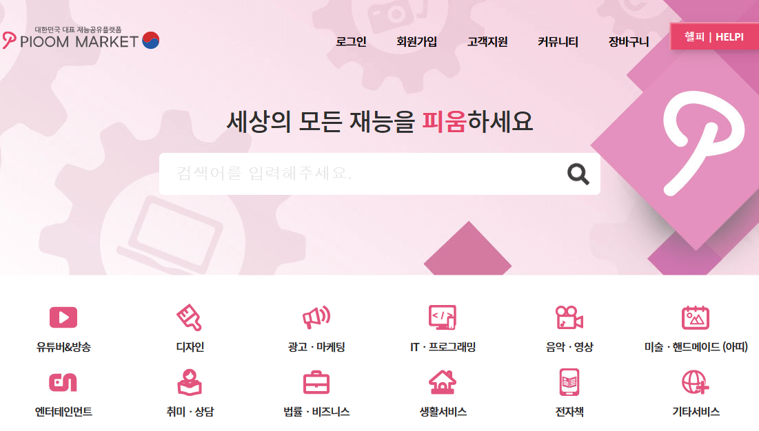 마지막으로 소개해드릴 사이트는 피움마켓이 있습니다. 이곳은 그림만 사고 파는곳이 아닌 다양한 재능들을 거래할 수 있는 재능 사이트로 보시면 됩니다.
