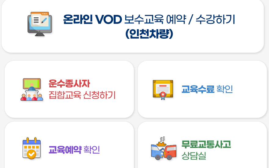 지역별로 교통연수원 홈페이지에서 신청을 할 수 있는데, 운수종사자 교육 > 교육예약 순서로 보수교육을 신청하실 수 있습니다.