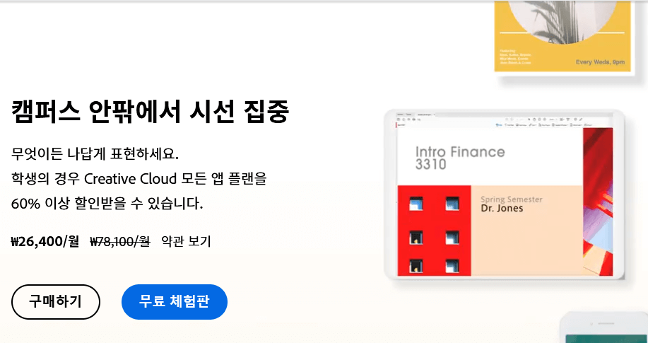 어도비 학생할인 받으면 금액은