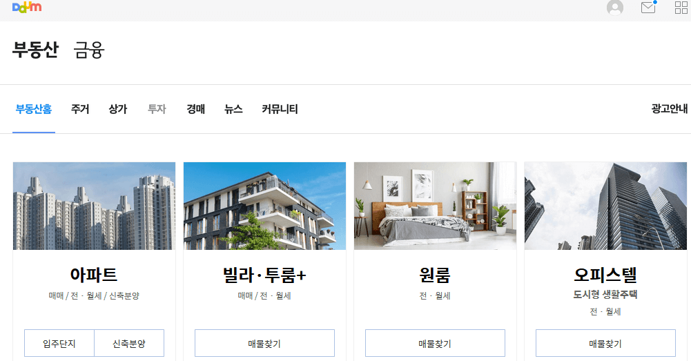 다음에서는 부동산 서비스도 제공하고 있는데요, 다들 다음 아시죠? 네이버 다음으로 유명한 검색엔진 포털 사이트죠.