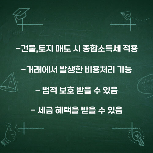 단, 부동산 매매사업자를 등록 시 목적물을 관리하는데에 들어가는 건물 관리비, 용역비, 수수료를 비용으로 처리할 수 있어 절세전략으로 활용이 가능합니다.