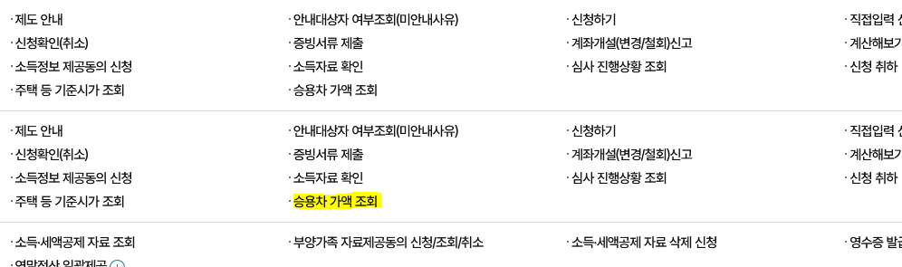 홈택스에 접속하신 후 메뉴에서 장려금·연말정산 전자기부금으로 커서를 갖다 대시면 '승용차 가액 조회' 기능을 알아보실 수 있을거에요.