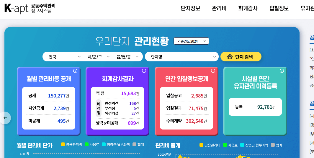 주택관리 정보 시스템에서는 전국에 있는 아파트들의 관리비를 알아볼 수 있는 홈페이지라고 보시면 된다.