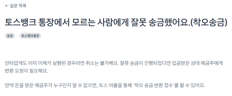 토스를 통해서 돈을 잘못 보내는 경우를 착오송금이라고 하는데, 생각보다 비일비재하게 발생합니다.