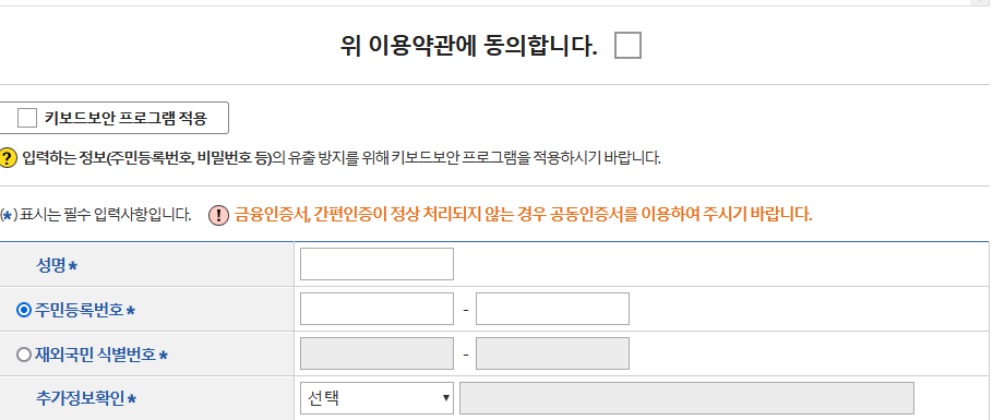 대표적으로 성명, 주민등록번호, 추가적인 정보를 기입해주시면 되죠.