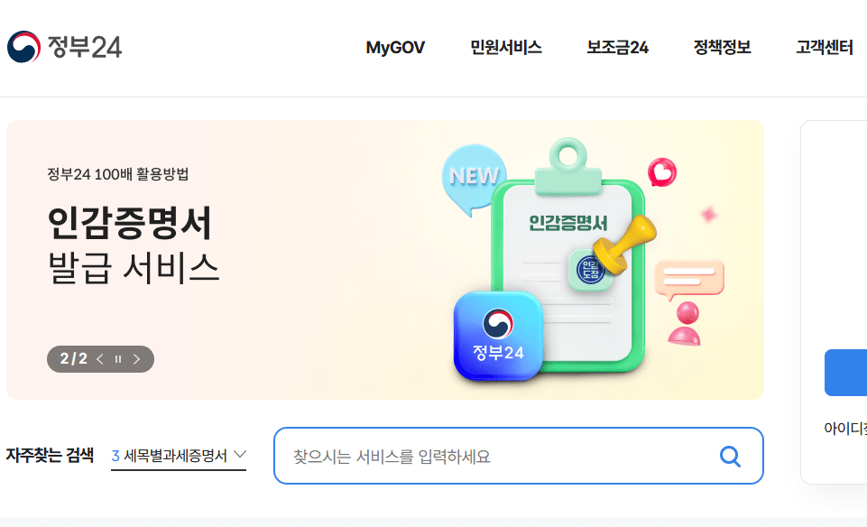 - 정부24 홈페이지 접속
