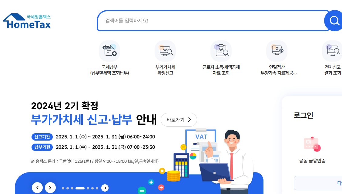 - 국세청 홈택스 홈페이지 접속하기
