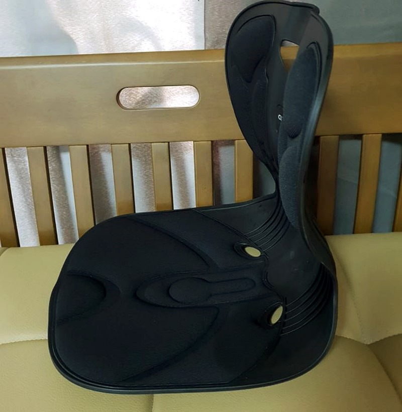 앉으면 허리를 밀어주는 원리이기 때문에 허리가 지지되고 자세가 바로잡히는 효과를 보이고있습니다. 잘못된 자세로 의자에 장시간 앉아있을때마다 허리통증으로 고생하시는분들에게는 좋은 제품이 아닐까싶습니다.