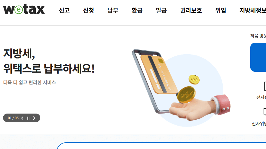 위택스 홈페이지를 통해서 납부가 가능하며, 홈페이지에 접속 후 자동차세 메뉴로 이동하시면 됩니다.