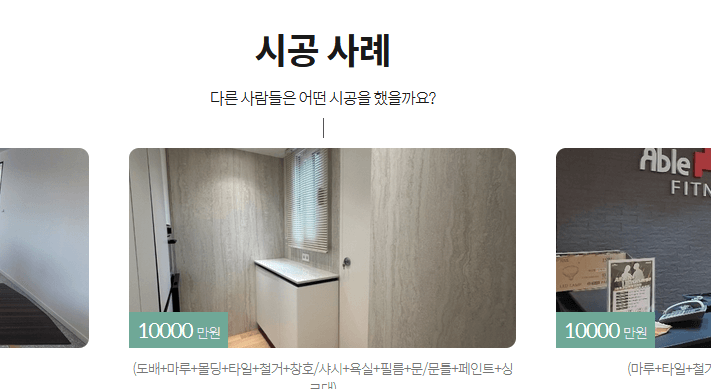 메인 페이지에서는 다른분들의 예상 견적과 상세한 내역들도 소개가 되어있다 보니 미리 갸름해볼 수 있죠.