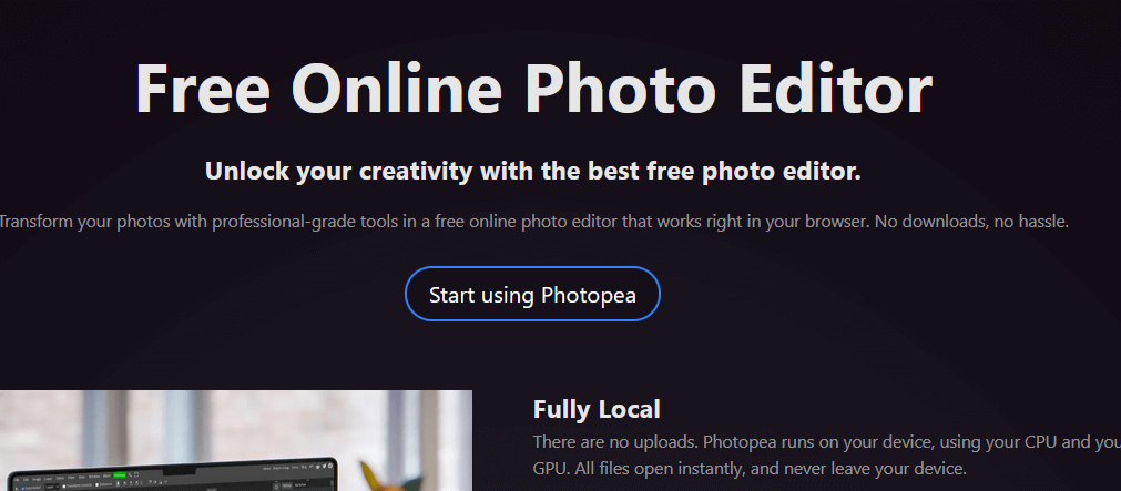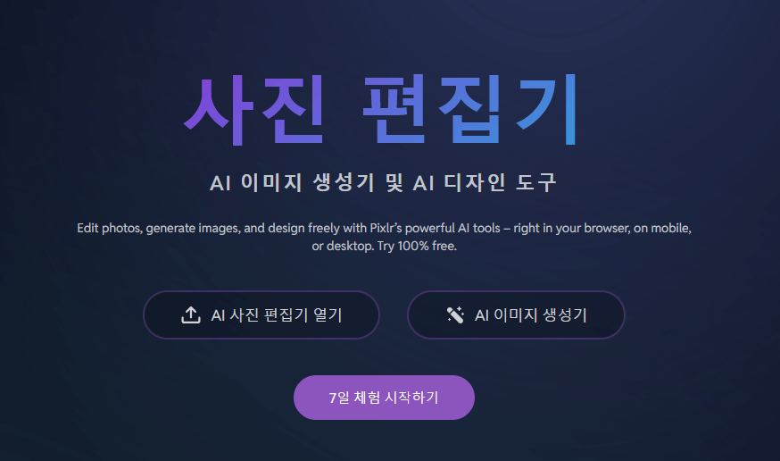 어도비 포토샵과 유사한 다양한 기능과 편집 도구들을 제공하지만 무료로 사용할 수 있는 온라인 사진 편집기죠.
