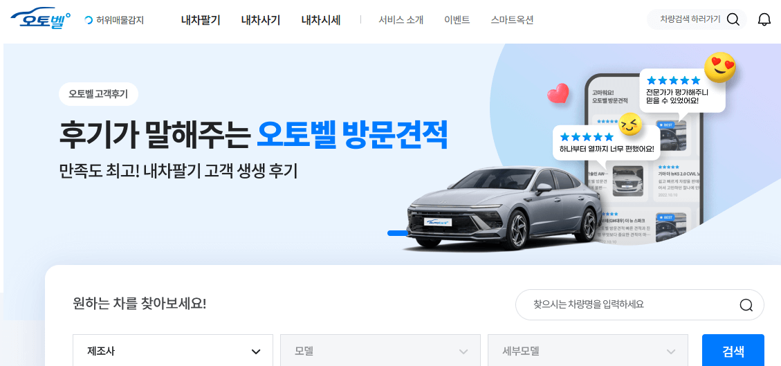 중고차 판매 및 구매 플랫폼으로 내 차 시세를 본인 인증 절차만 거치시면 아주 간단하게 조회를 할 수 있습니다.