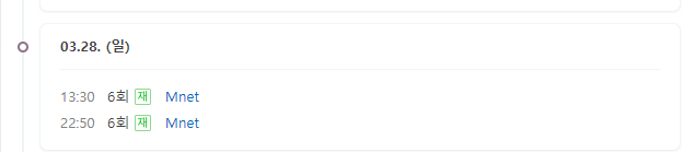 3/28 일요일 또한 6회만 방영하고 있기 때문에 6회를 보고싶으신분들은 편하신 시간대에 시청하시길 바랍니다.