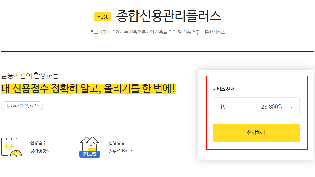 종합신용관리 플러스 상품에서 자신의 신용점수를 정확하게 알고 보다 더 빠르게 신용등급과 점수를 상승할 수 있는 솔루션을 제공하고 있는 상품이라고 할 수 있습니다.