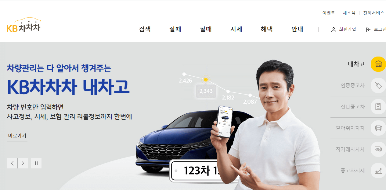 KB차차차에서도 내차 시세조회가 가능합니다. 아무래도 대기업에서 운영하는 시스템이기에 아무래도 조금 더 신뢰가 될 수 있겠죠. 시세조회 이외에도 진단차량, 인증차량 등을 상세하게 확인할 수 있으며 자신의 차 상태도 정확하게 진단이 가능하다고 합니다.