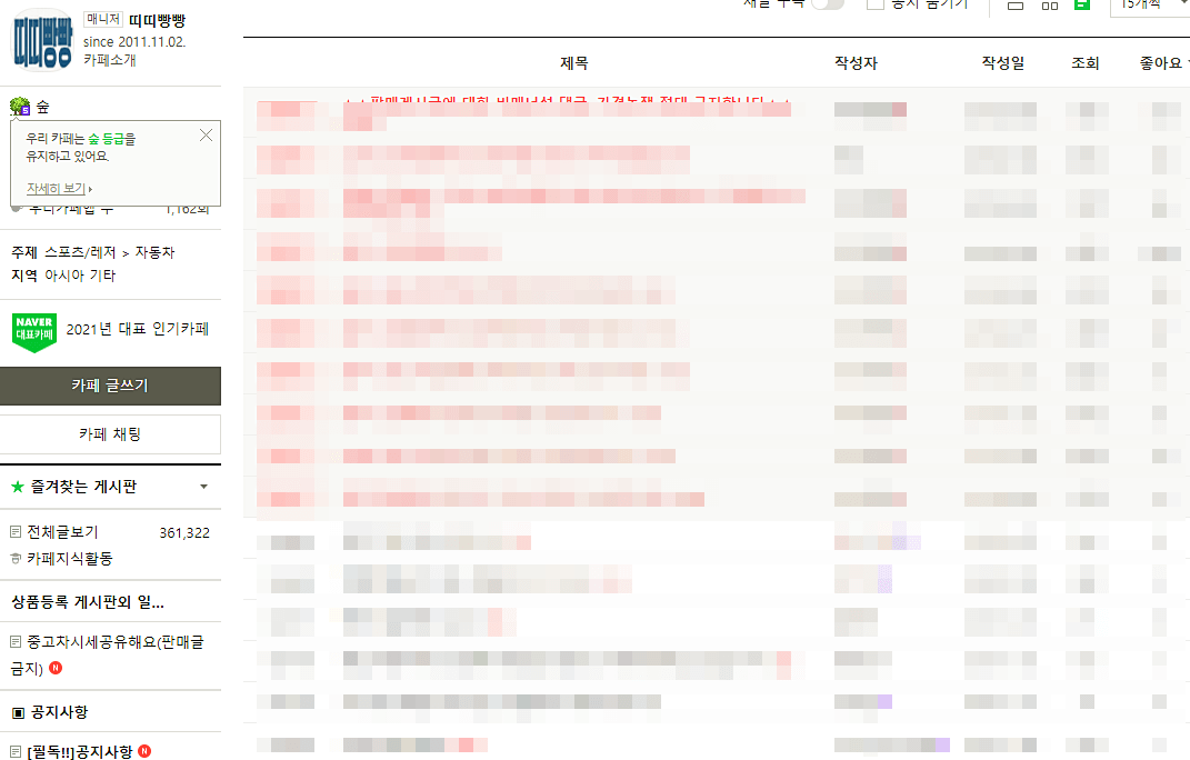 중고차 직거래로 유명한 띠띠빵빵 중고차 카페에서 활동하다보면 같은 아이디로 판매하는 여러개의 매물이 보일건데, 이걸 매번 보는것도 일이지만 둘째치고 볼 때마다 짜증나는 감정은 어쩔 수 없을겁니다.
