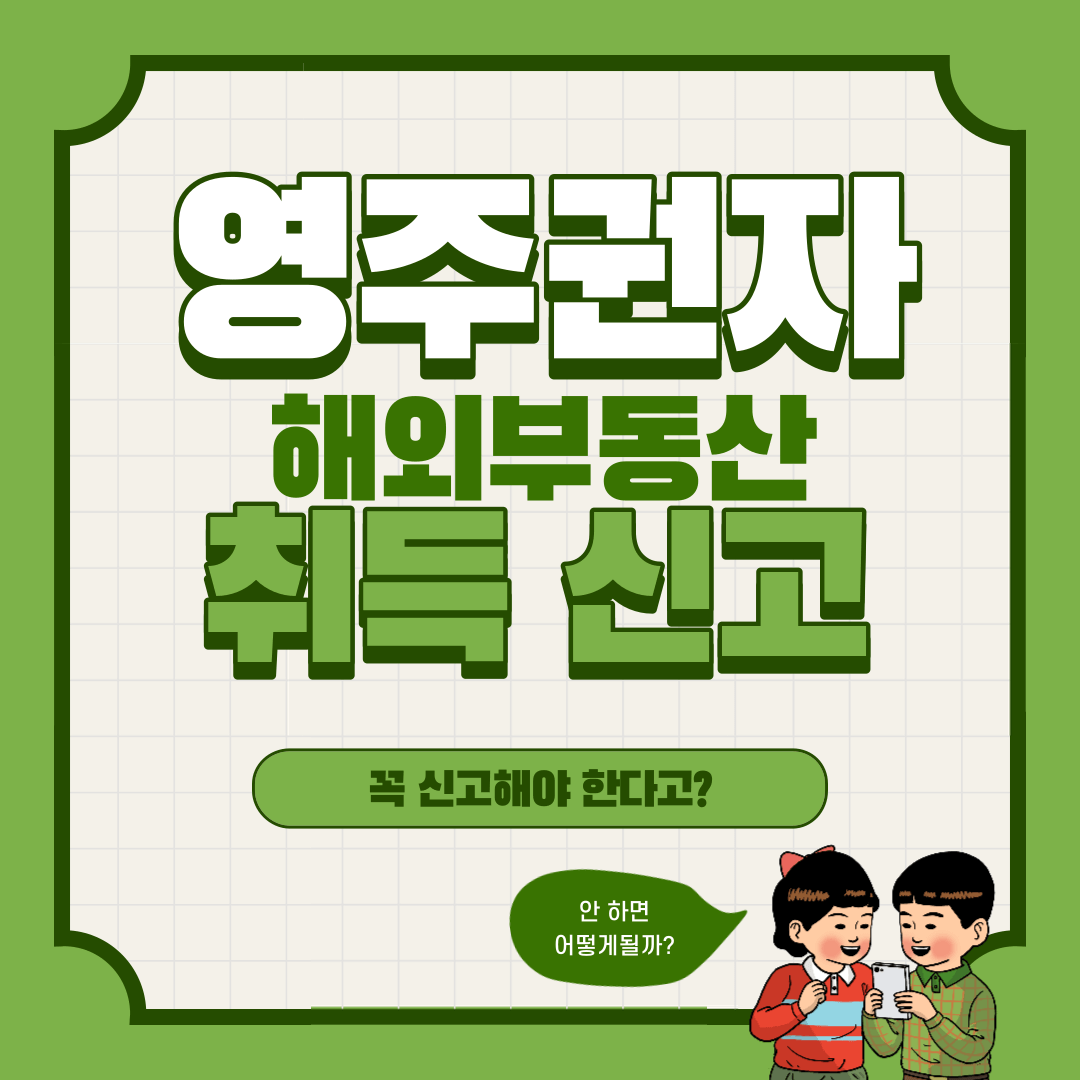 영주권자가 해외부동산 취득했을 때 과연 한국에 신고를 해야할까요? 요즘들어 미국과 호주를 비롯해 해외부동산을 취득하려는 사람들이 많아지다보니 쉽게 기사를 찾아볼 수 있습니다. 하지만 이는 대부분 비영주권자로 영주권자에 대한 소식은 잘 찾아볼 수 없죠.