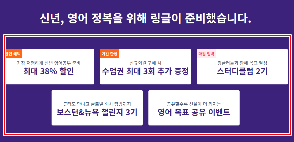 링글에서는 신년 프로모션으로 전체 수업권 할인 기회를 진행하고 있습니다.