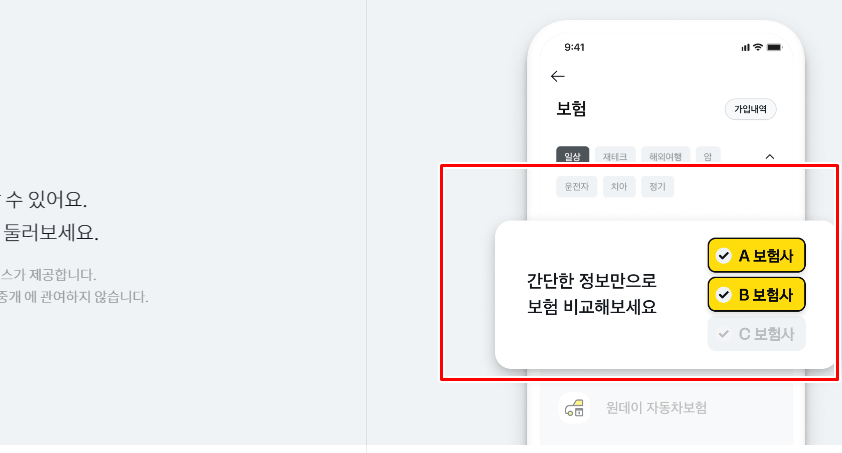 카카오페이에서는 내가 원하는 보장을 선택하면서 제휴된 보험사 중에 가장 저렴한 최저가로 비교하면서 보험사를 알아볼 수 있습니다.