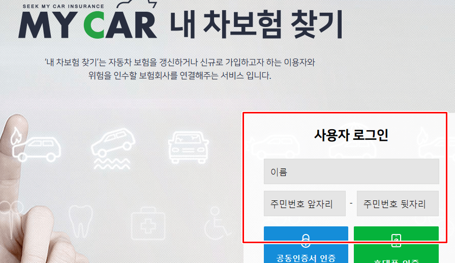 로그인을 하시면 쉽게 본인 소유 자동차의 보험회사를 확인할 수 있습니다.