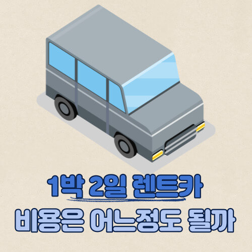 하지만 몇 시간도 아닌 1박 2일 렌트카를 빌리게 되면 가장 걱정하는 것 중 하나가 바로 렌트카 비용입니다.