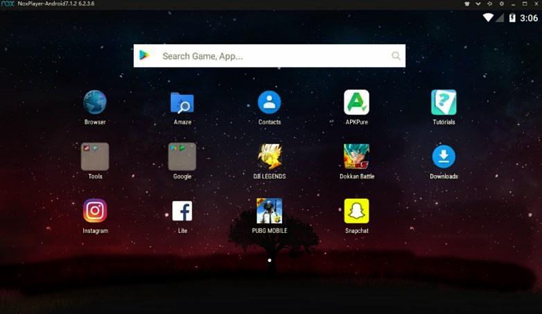 녹스 설치 이후에는 일반 핸드폰과 같은 창이 띄어지며 스마트폰을 이용하듯이 플레이스토어에서 어몽어스를 검색하시고 설치를 하시면 끝입니다. 아주 간단합니다.