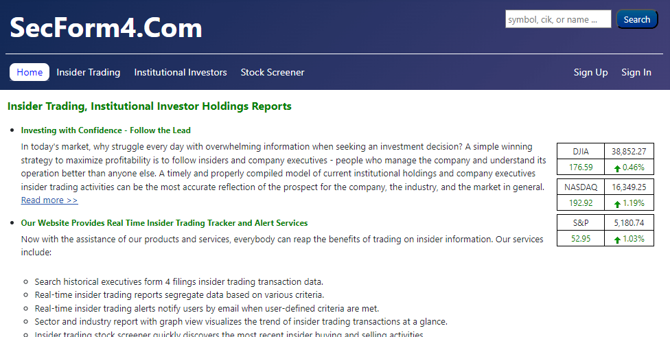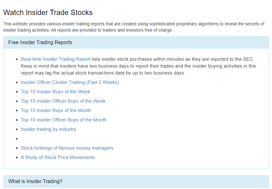 개인적으로 생각하는 가장 큰 장점 중 하나는 미국 증권거래위원회 (SEC)에 올라 온 내부자 거래 리포트를 실시간으로 확인이 가능해 일반인들이 알기 전에 미리 확인할 수 있다는 점이죠.