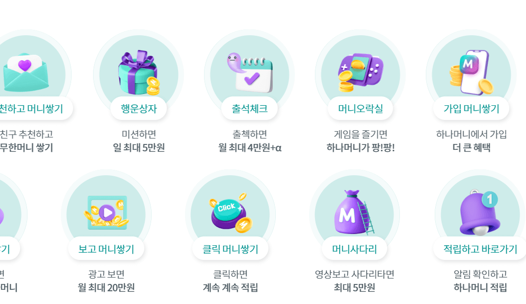 참고로 하나머니를 처음 가입하시는 분들은 코드를 입력 하신다면 1천/ 1만/ 5만 하나머니 랜덤 추가 지급을 받을 수 있어요.