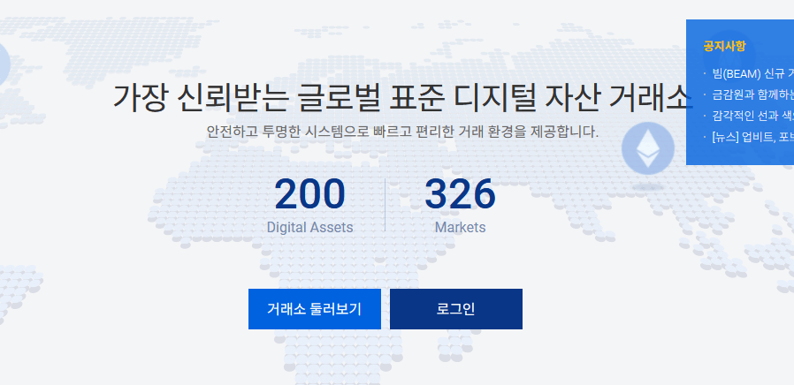 국내 코인 거래소 중에서 단연 1위로 가장 많은 종류의 코인들이 상장되어 있지만, 요즘에는 빗썸이 더 많은 종류의 코인이 상장되어 있는것으로 보여지네요.